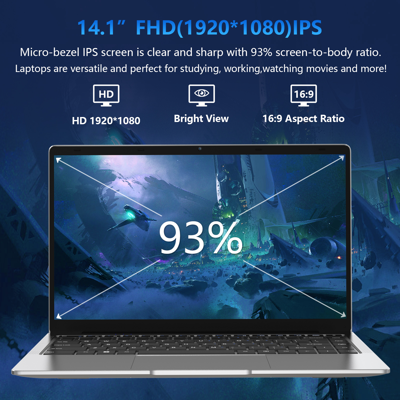 Our cutting-edge laptop featuring a stunning 14.1-inch Full HD IPS display with a resolution of 1920x1080. you'll experience exceptional clarity and color accuracy from any angle. you can enjoy crystal-clear visuals even in brightly lit environments. Whether you're working, studying, or connecting with loved ones, this laptop offers a visually immersive and convenient solution