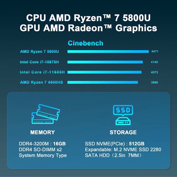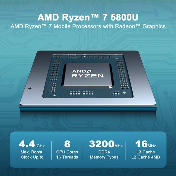 | CPU | AMD Ryzen™ 7 5800U (8 core 16 lines 4.4GHz L2 4MB L3 16MBAMD) | |