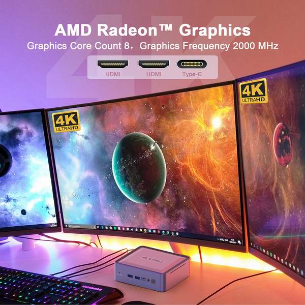AMD Radeon Graphics 2000MHz, dual HDMI and USB-C 4K outputs, WiFi6/BT5.2